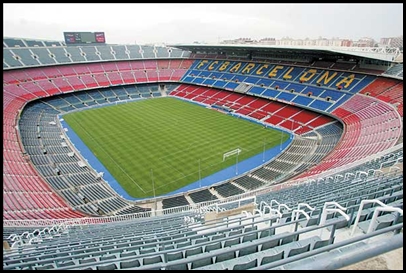 The camp nou stadium, (the nou camp in english) is the largest football stadium in europe, seating just under 100,000 spectators.